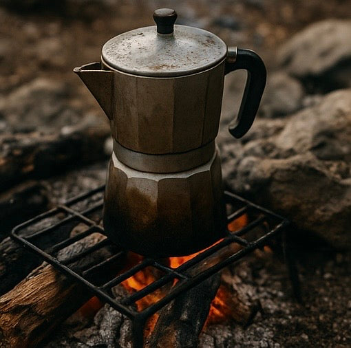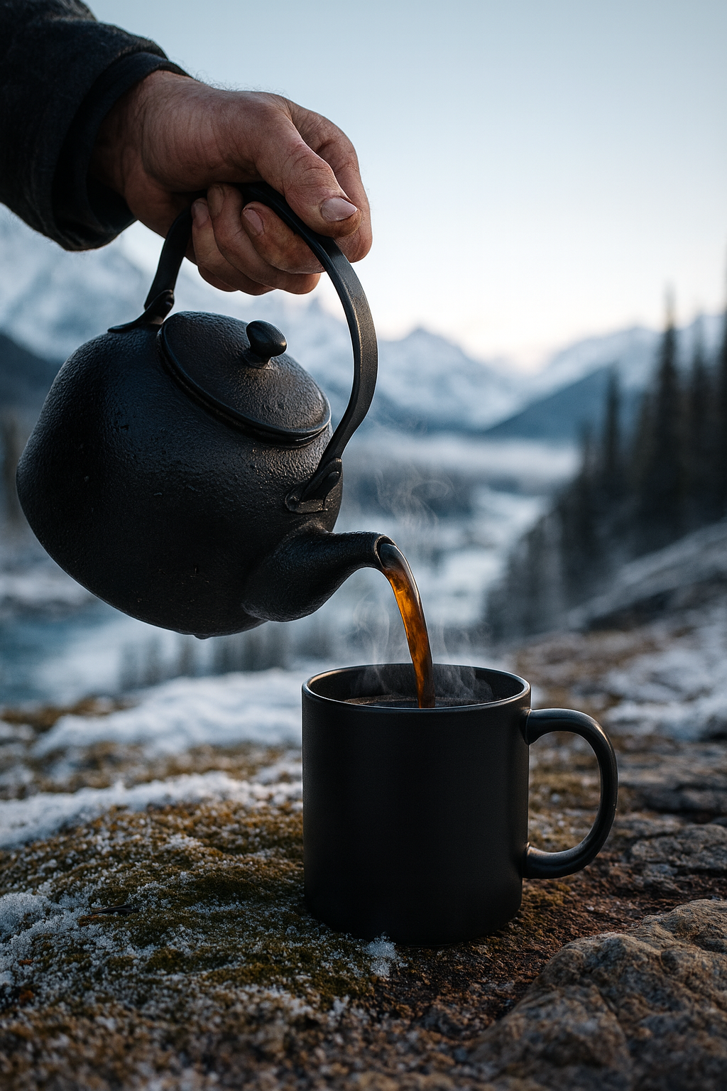 Pour hot water (just off boil) to cover the grounds (~60–80 g).